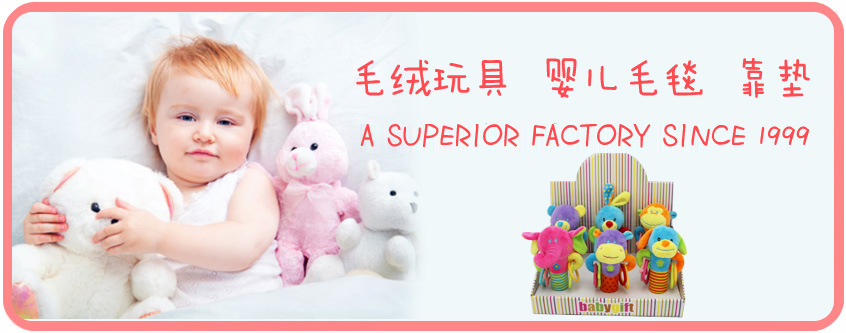 創(chuàng)建于1999年,公司主要經營產品有:各種毛絨玩具,靠墊,童毯,嬰童家紡產品,布匹等,公司注冊資本300萬美元,現(xiàn)有員工200余人,占地達30畝,廠房15000平方米,可年生產玩具及靠墊2百萬只,家紡成品100萬套,布匹100萬米。